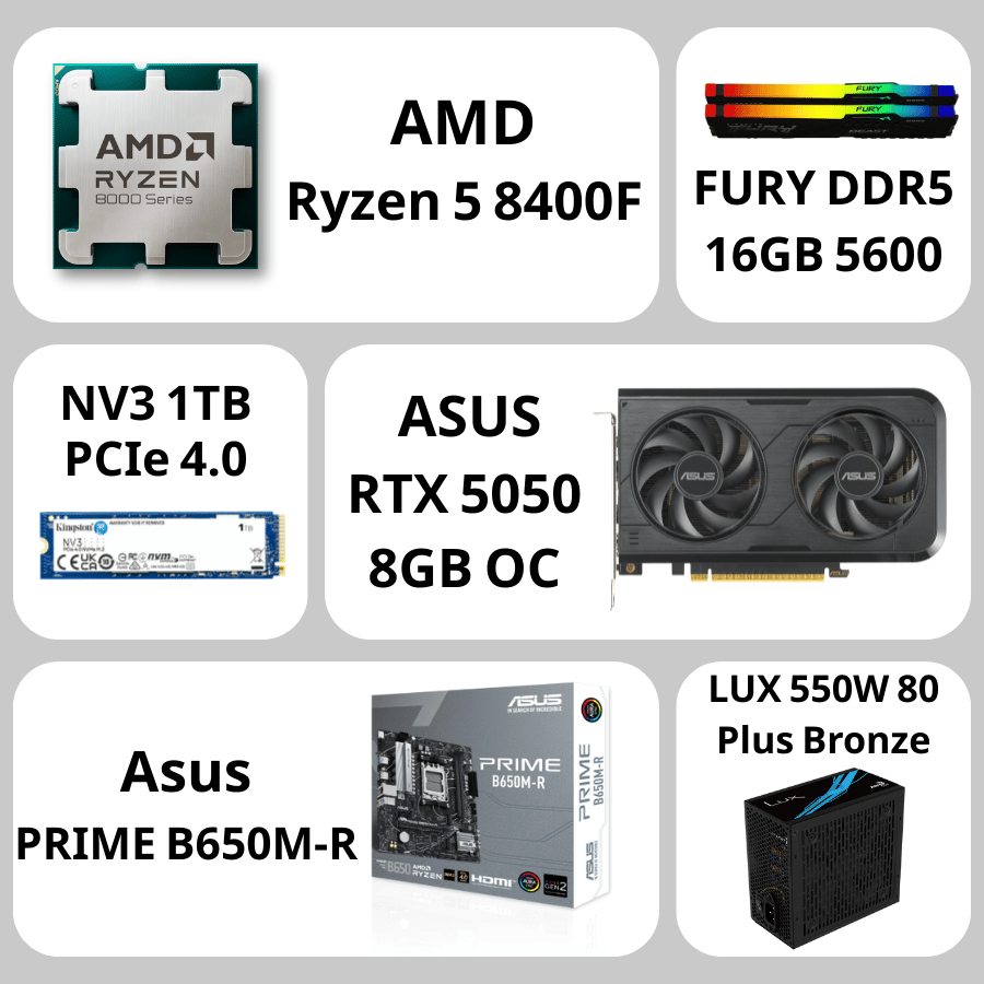 تجميعة بي سي قيمنق ستارت, Ryzen 5 8400F, RTX 5050, 16GB RAM, 1TB SSD