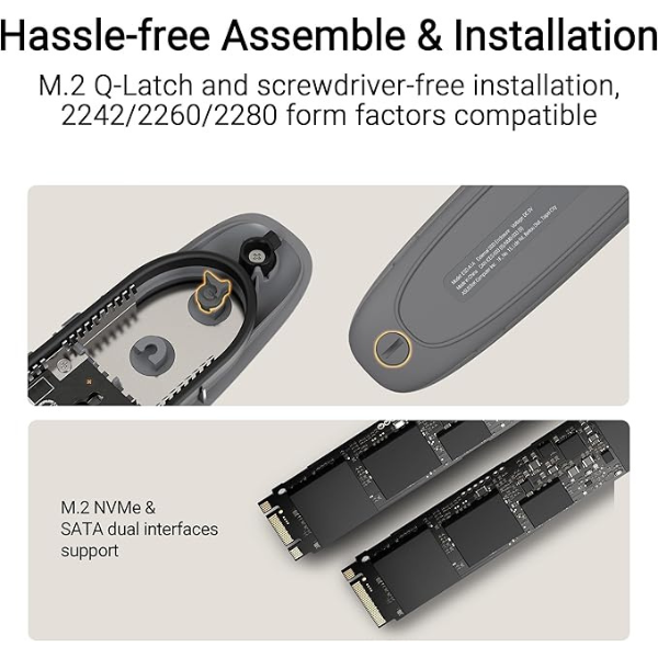 | Max Storage: | Up to 4 TB | SSD Compatibility: | M.2 PCIe NVMe & M.2 SATA (2242/2260/2280) |